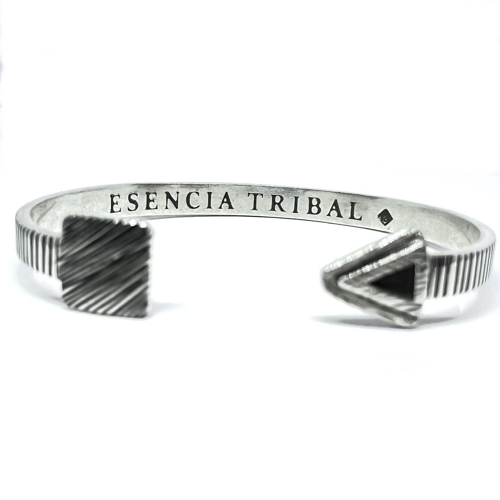 Esclava maciza fundida en plata 925 con motivo de flecha. Esta esclava está trabajada a mano logrando un contraste único entre brillante y envejecido.